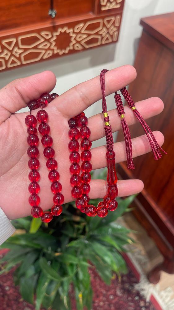 سبحة زعفران ذات رائحة عطرية و لون جميل حرباء تعطي تدرج اللوان مع الإضاءة الشكة - طرابزون فضة عدد الخرز 65مقاس الخرز 7