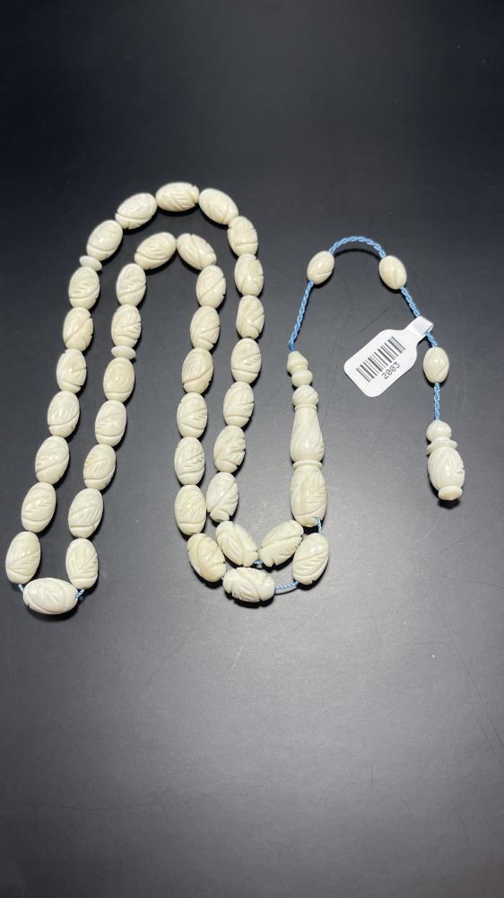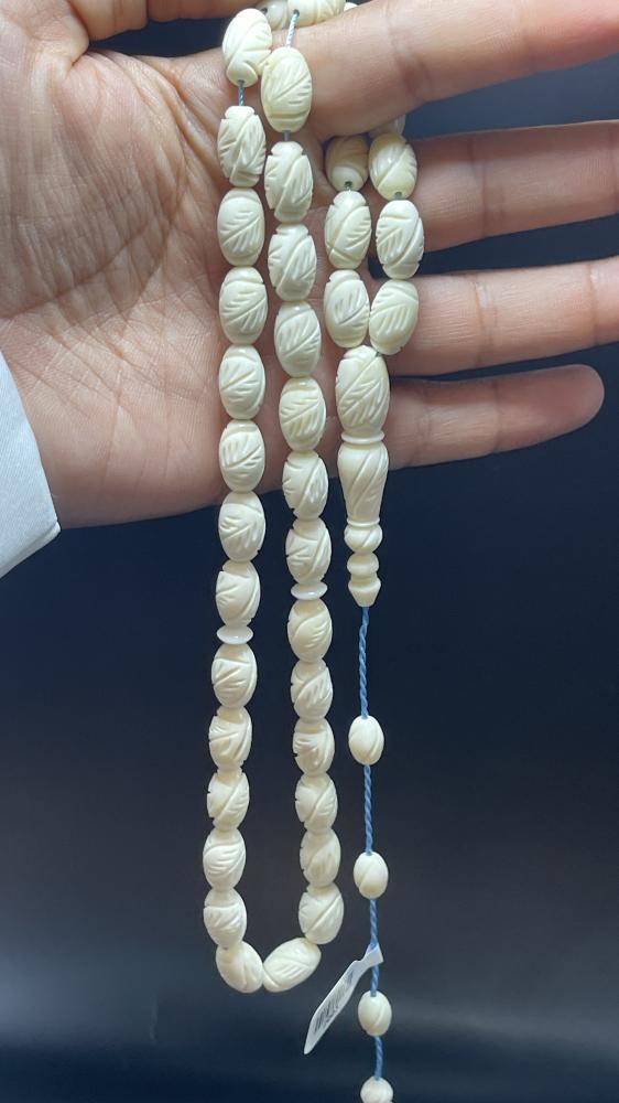 عظم جمل منقوش تمليكه القصه بيض نعام عدد الخرز 39 المقاس 13 * 8 ملي